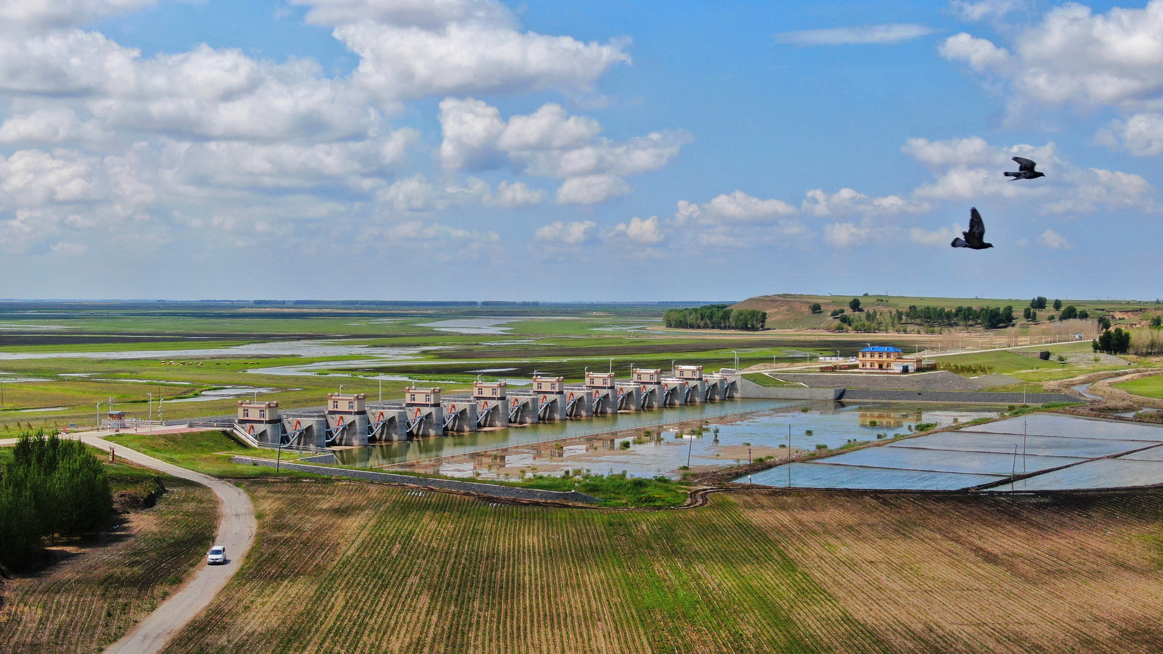 三站排水站是肇源县重要的农田水利设施,主要用于农田排涝和灌溉。排水站建筑为现代风格,功能完备,配备先进的泵站设备。在雨季,排水站及时排除农田积水,保障农业生产安全;在旱季,可抽取嫩江水进行灌溉,为农业生产提供保障。这里展示了现代水利技术在农业生产中的重要作用。